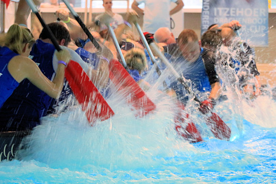 Beim Itzehoer Indoor-Cup paddelten die Teams in Vorlaufgruppen Jeder gegen Jeden um Punkte und Zeiten, um sich für eine Finalgruppe zu qualifizieren. Die Tagesform entschied über die Klasseneinteilung. In der Finalrunde trafen die Teams in ihrer Leistungsklasse von Sport bis Fun aufeinander. Es gibt in den Vorläufen natürlich Favoriten. Der Ausgang einiger Rennen war klar und kaum anders als erwartet. Es gab aber auch immer wieder überraschende Ergebnisse. In der Finalrunde, wenn Teams gleicher Leistungsstärke aufeinandertrafen, wurde es richtig spannend.