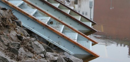 Der Steg wird von einem Schiff abgefahren. Der Fall wird von der Wasserschutzpolizei übernommen und die Itzehoer Wasser-Wanderer schalten einen Rechtsanwalt ein.